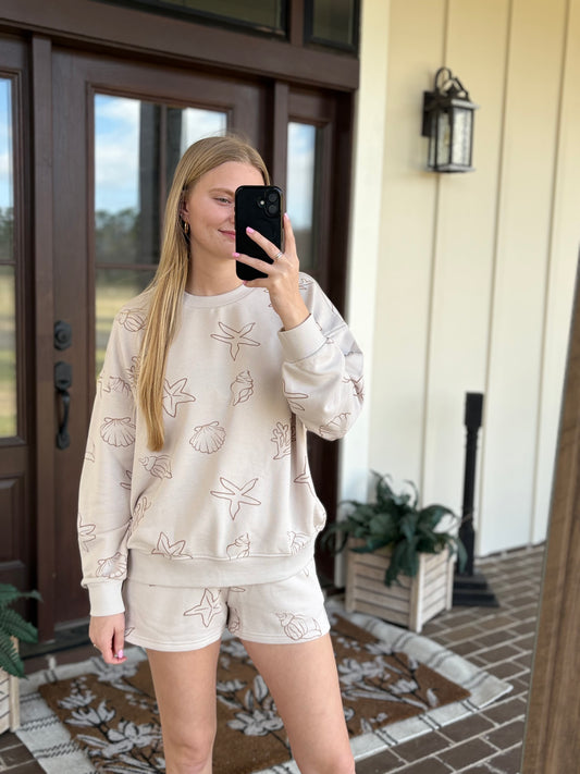 Sea Print Crew Neck Set