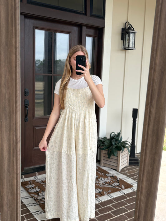 Blue Printed Floral Overalls