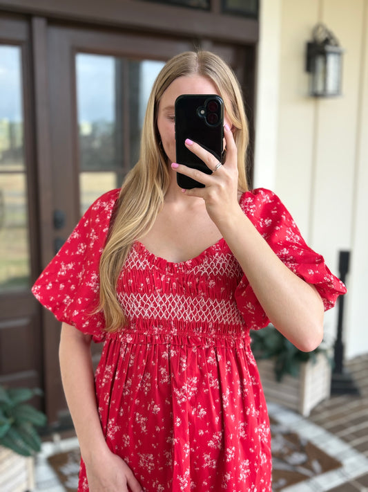 Red Multi Floral Smocked Maxi