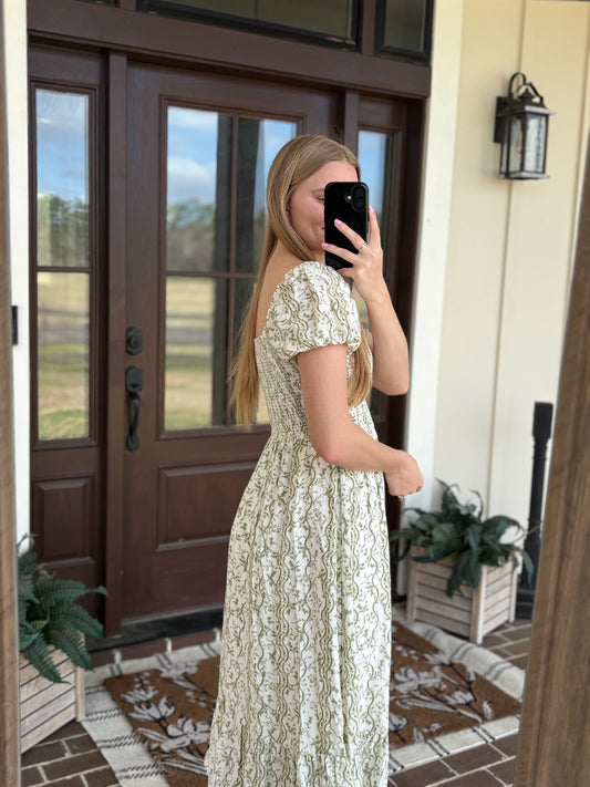 Olive Floral Midi