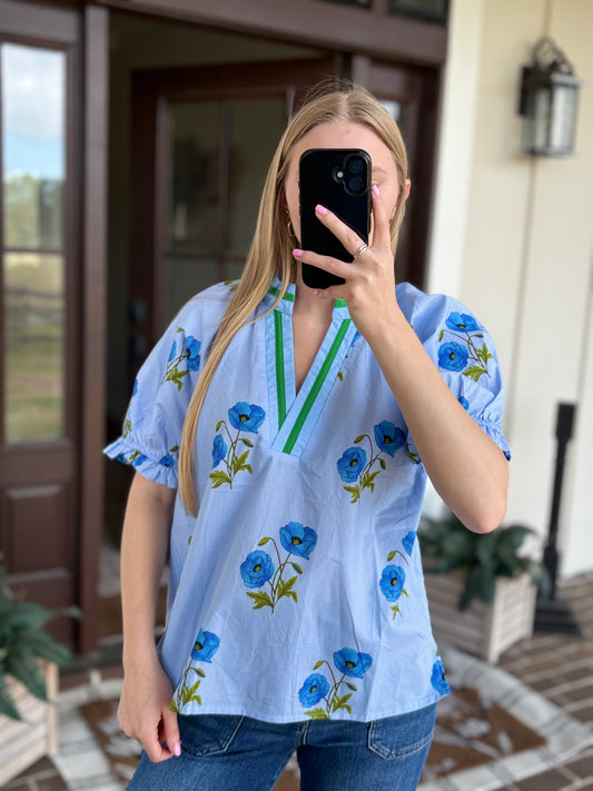 Blue Floral Print Blouse