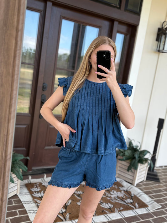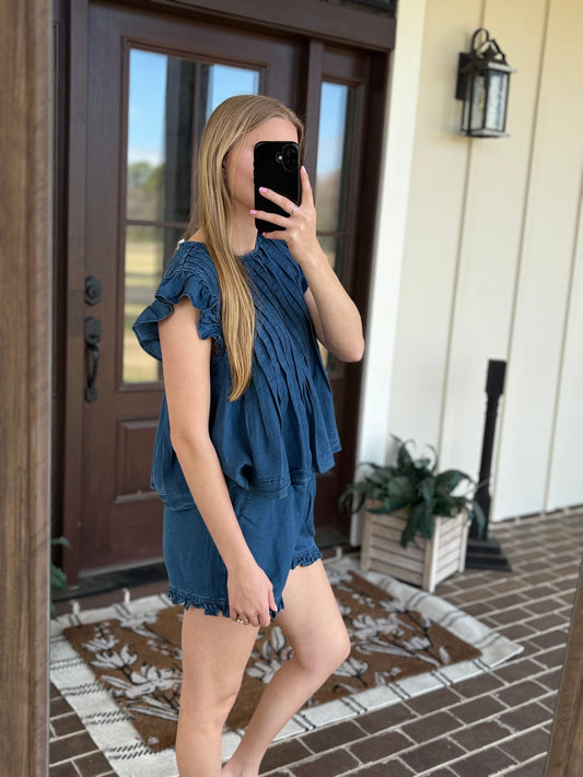Ruffled Hem Denim Shorts