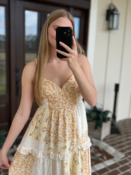 Butter Yellow Multi Pattern Midi