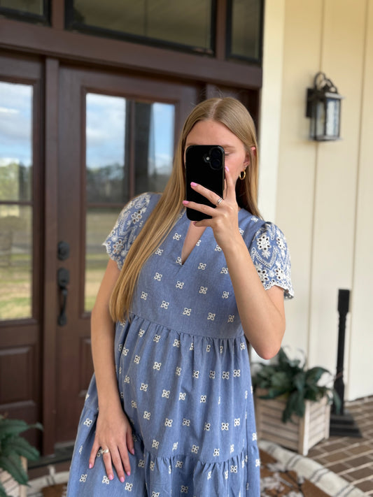 Blue Denim Eyelet Dress