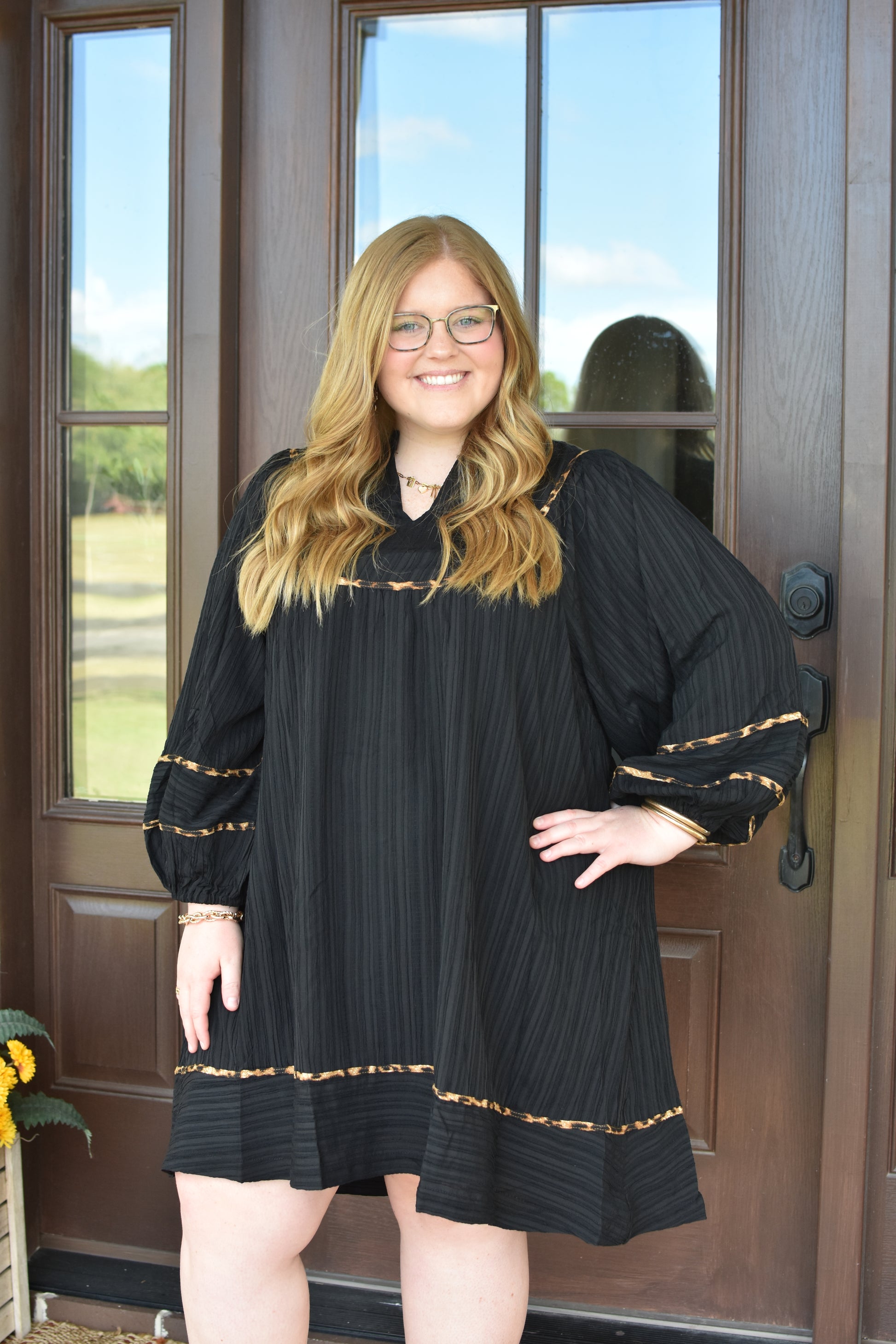 Black long sleeve mini with cheetah print details